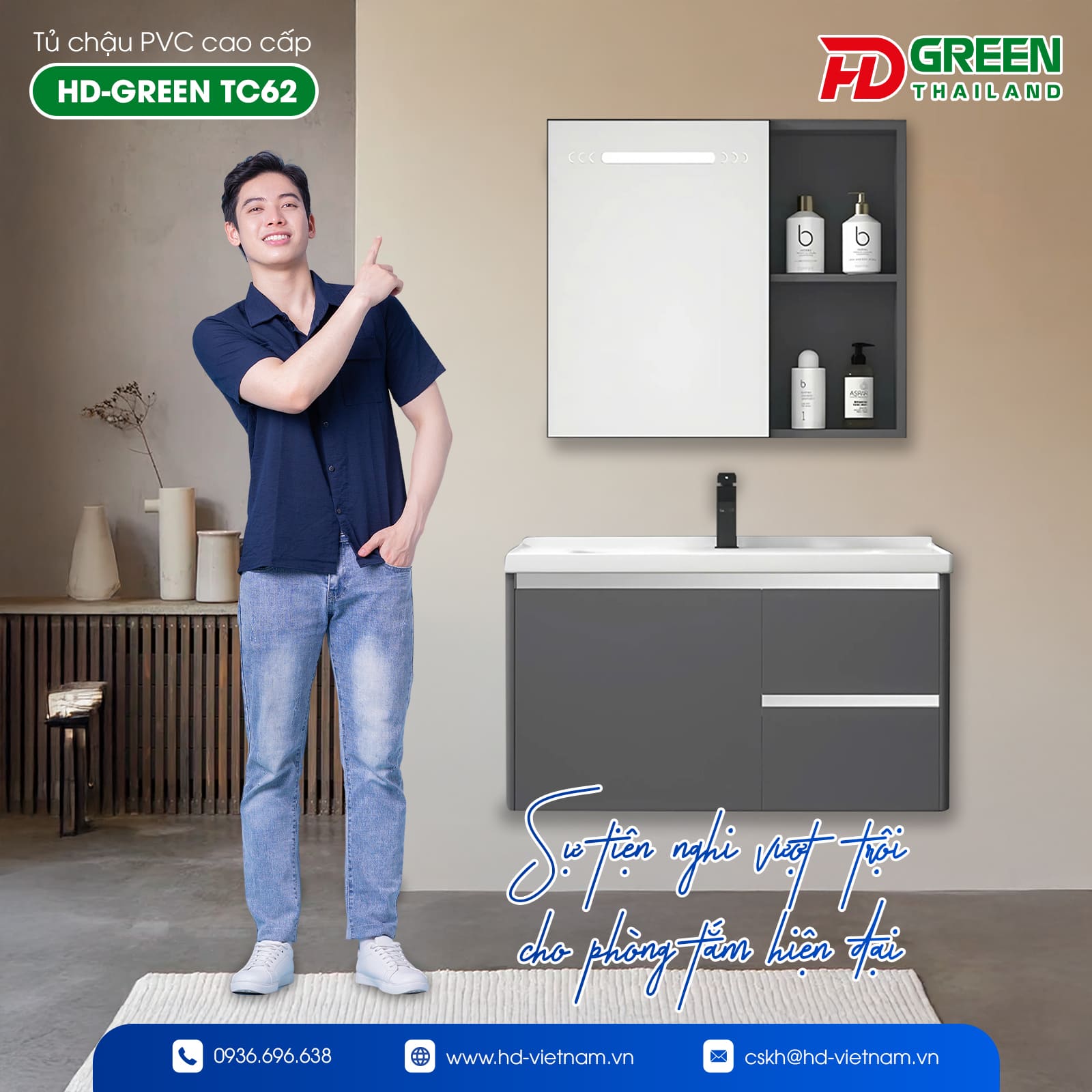 - Thiết kế đa dạng: HD-GREEN mang đến nhiều mẫu mã tủ chậu phù hợp với phong cách hiện đại, tối giản hoặc sang trọng.