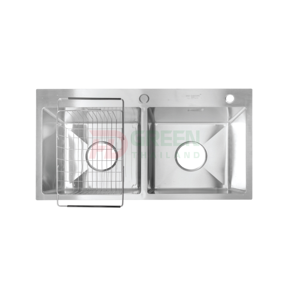 Chậu rửa bát HD-GREEN CRB C23 mang lại sự tiện ích với thiết kế 2 hố cân tiện dụng, có tích hợp lỗ gắn vòi bếp nóng lạnh và lỗ phụ cho vòi đa năng. Sản phẩm sử dụng chất liệu Inox 304 cao cấp, được dập nguyên khối và phủ nano kháng khuẩn, tạo nên độ bền cao, chống trầy xước, dễ dàng vệ sinh. Kích thước D.800 x R.500mm giúp chậu phù hợp với nhiều không gian bếp hiện đại, đảm bảo hiệu suất sử dụng và vẻ ngoài sang trọng.