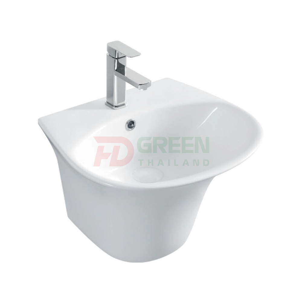 - Kiểu dáng: Chậu rửa treo tường, liền chân, tiện dụng.