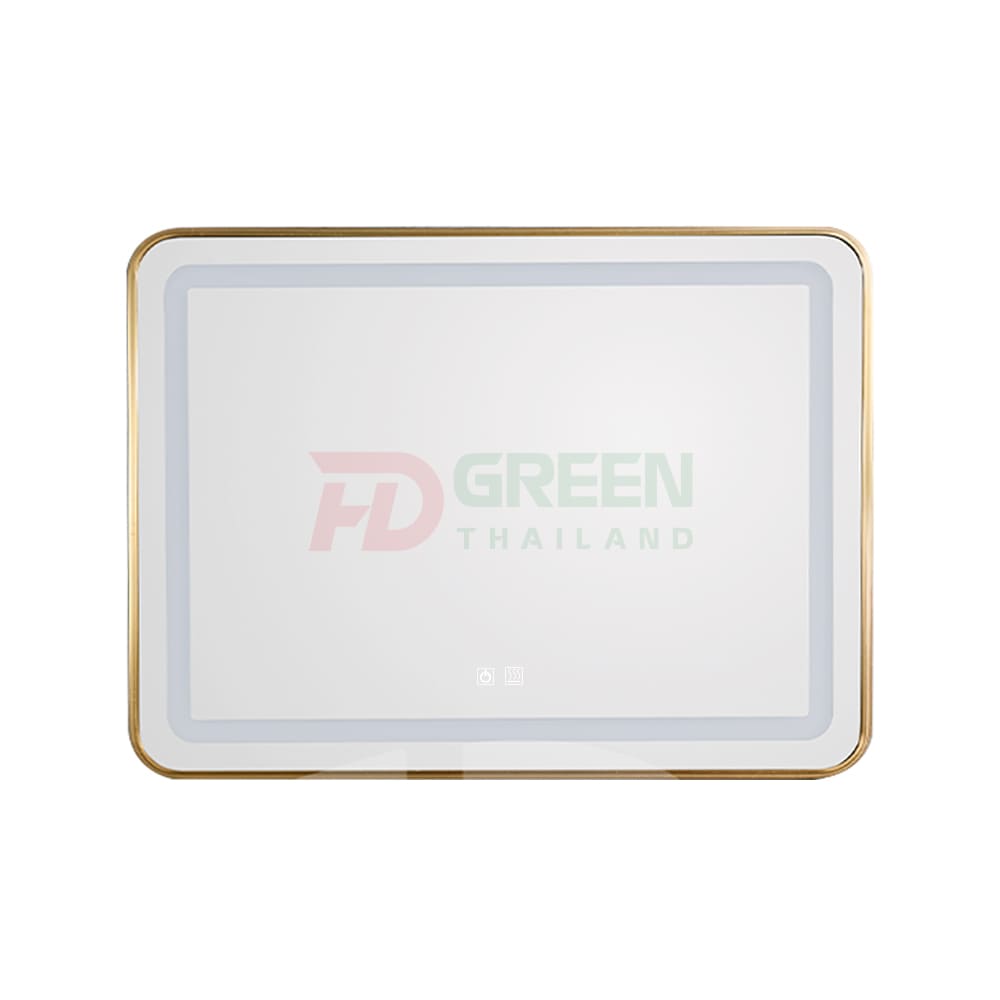 - Thiết kế viền LED hắt mặt gương sang trọng, khung nhôm mạ vàng.