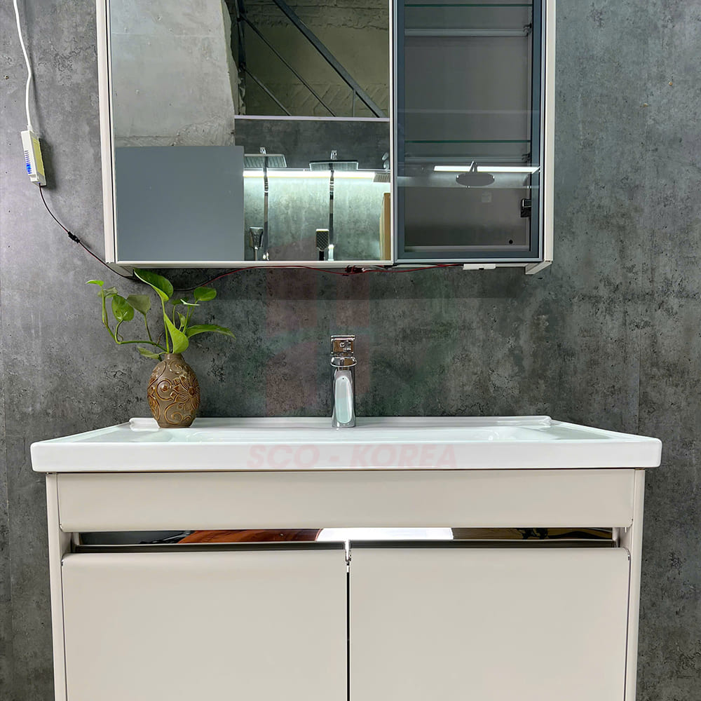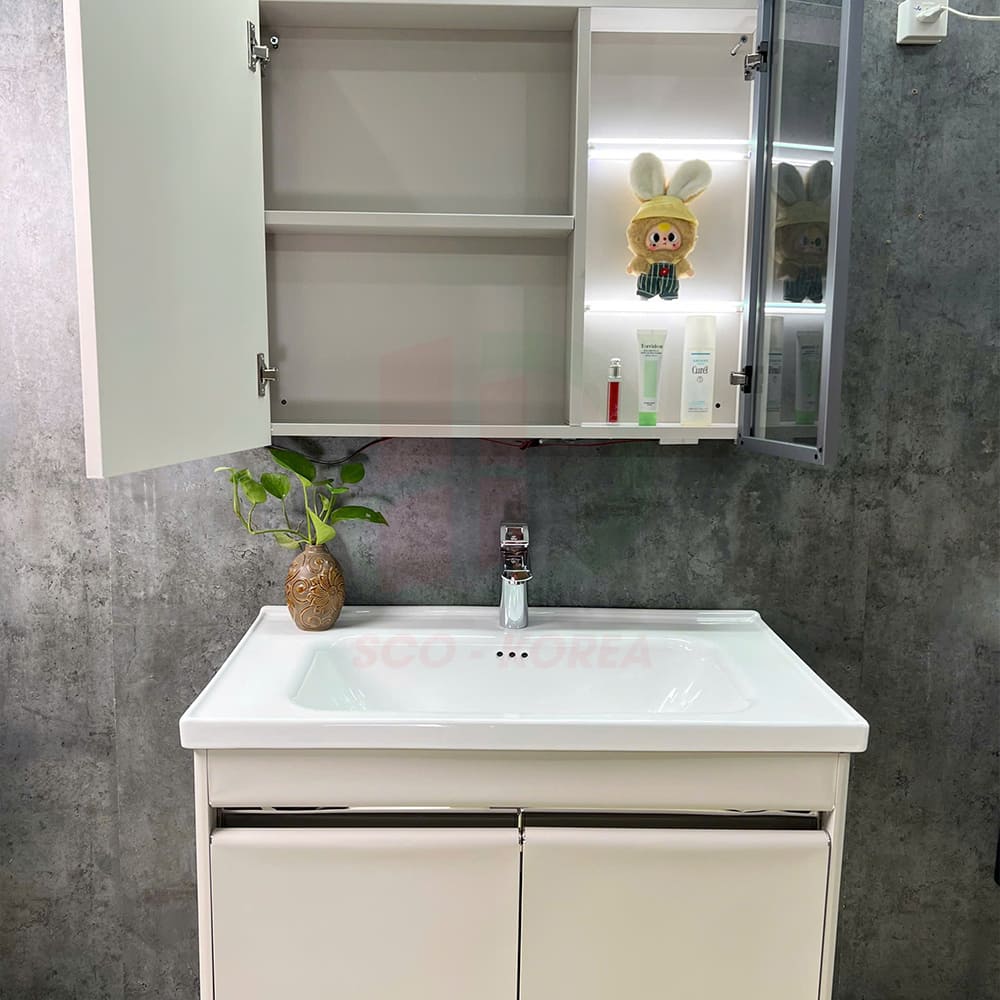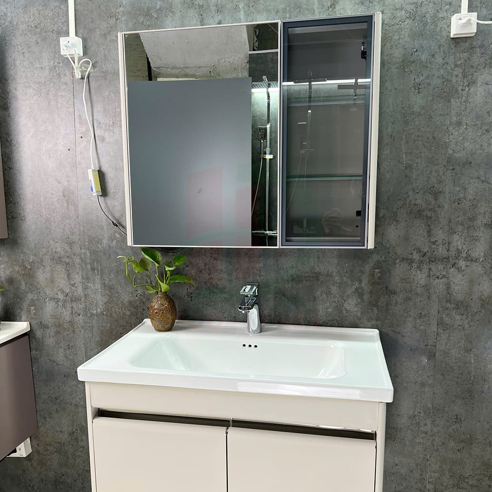 - Chất liệu: Tủ chậu inox cao cấp, chậu sứ men phủ nano.