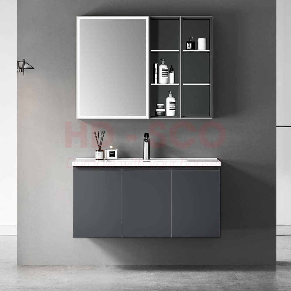 - Chất liệu: Tủ chậu SPC kết hợp nhôm tổ ong, chậu sứ men phủ nano.