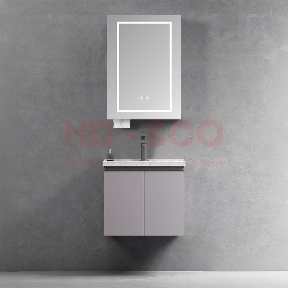 - Chất liệu: Thân tủ SPC kết hợp nhôm tổ ong, chậu sứ men phủ nano.
